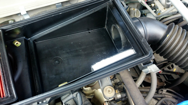 エンジンを開けて、エンジン本体の奥にあるエアクリーナーボックスを開きます。