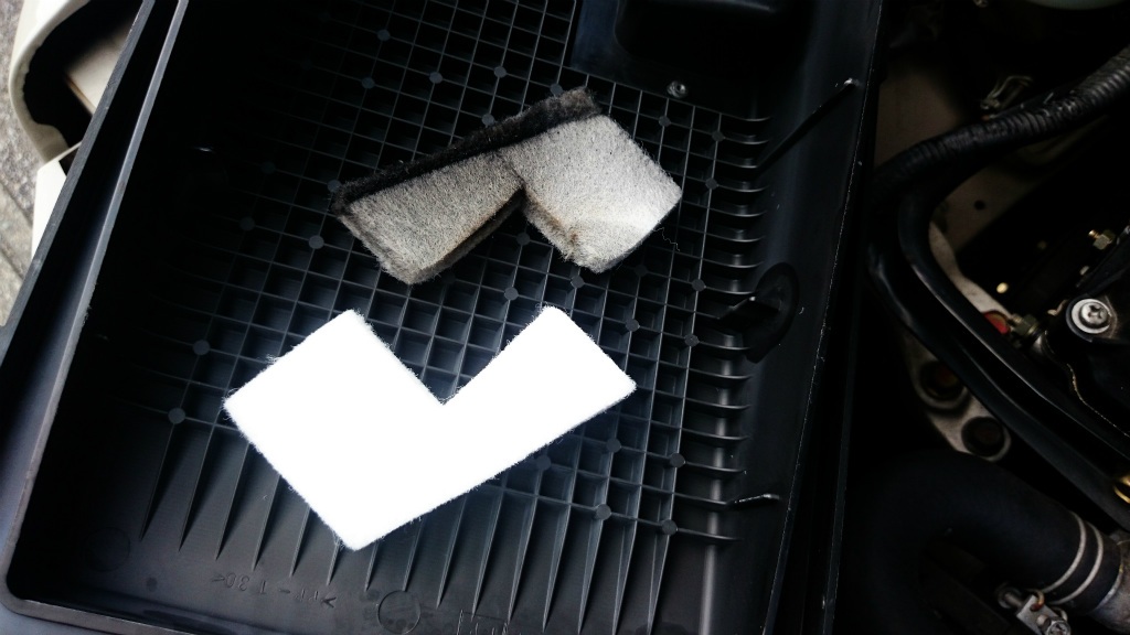 その後、色々なBLOGなどを見聞きしていたら、エアクリーナーエレメント以外にも、エアクリボックスにはもう1個フィルターがあることがわかったんです。