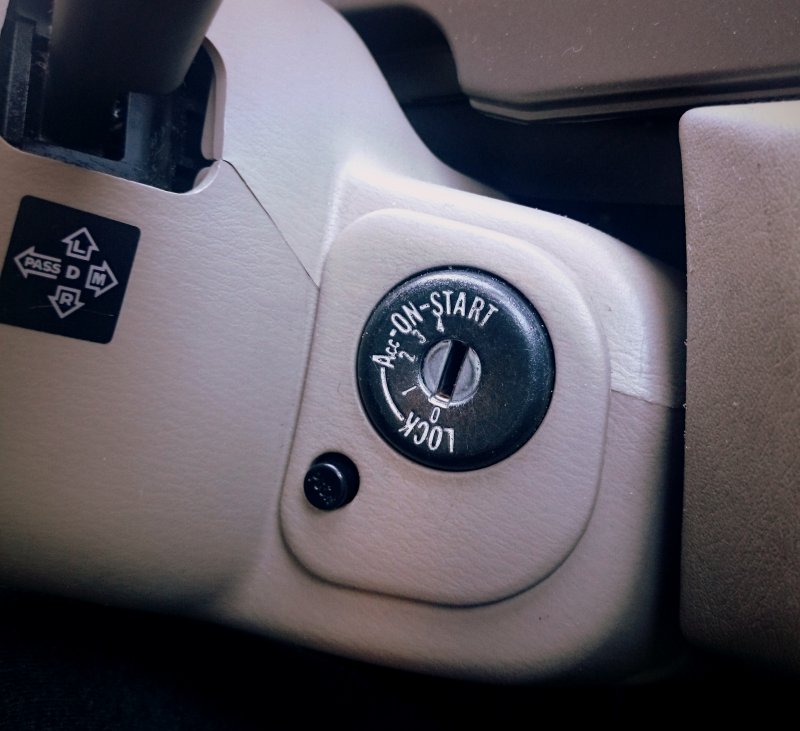 特徴的なのは、左下にボタンが付いていて、鍵を外す時はこのボタンを押さないと抜けなくなっていること。むか~しお母さんが乗っていた2代目マーチがこの機構を採用していた気がします。最初使い方がわからなくて戸惑いました。鍵が抜けねぇ!