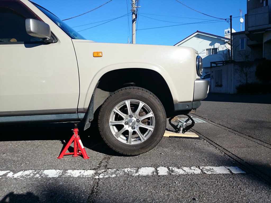こんなかんじです。左右同時に車体が上がるので、非常に作業がしやすいです。